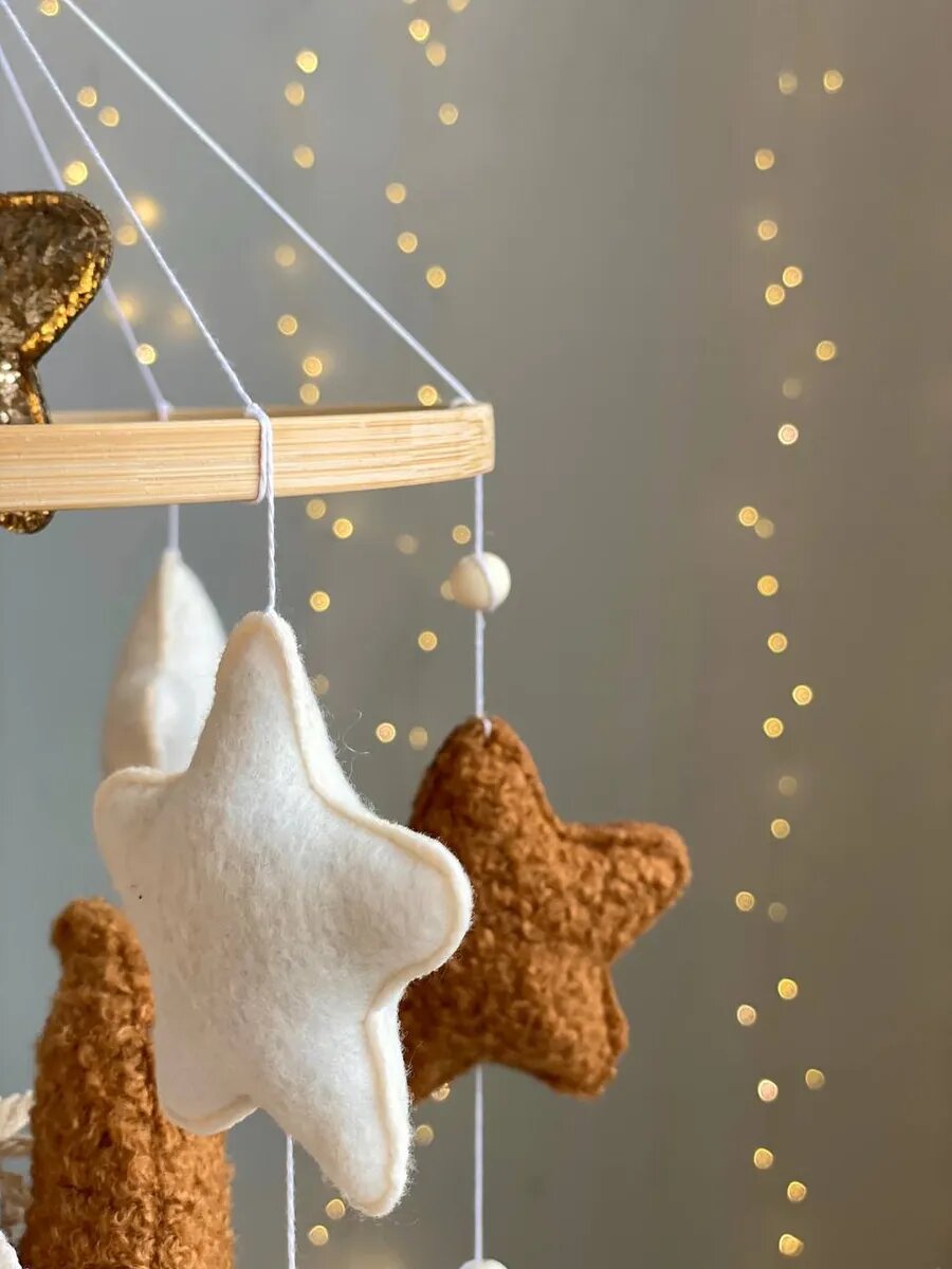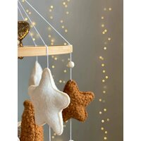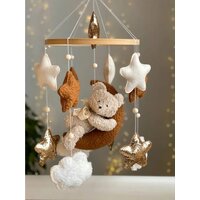В комплект входит- кронштейн +механический блок. Рекомендации по уходу: Сухая чистка мягкой щеткой для одежды, сухая чистка липким роликом для одежды, влажная чистка влажной салфеткой. Запрещено: отбеливать, стирать в стиральной машине, выжимать, сушить на батарее. Мобиль крепится на бортике в кроватке и имеет поворотный механизм. Вращение мобиль может сопровождаться музыкой. Крепление подходит для круглых и прямоугольных кроваток. Наш мобиль, это полностью ручная работа, мы производим мобиль