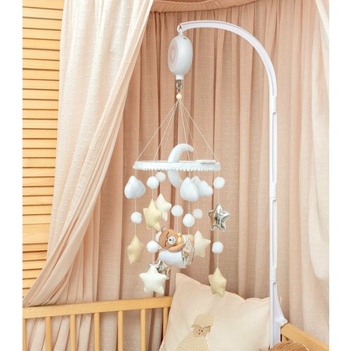 Музыкальный мобиль с мишкой с подсветкой в кроватку для новорожденных. В комплект входит: Мобиль с подсветкой (ночником), кронштей с регулировкой уровня высоты для кроватки, музыкальный блок на 35 колыбельных мелодий +2 батарейки в подарок. Украшение детской комнаты перед рождением малыша является важным этапом подготовки к появлению нового члена семьи.