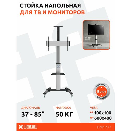 Мобильная стойка UNITEKI ST007RDLIFT предназначена для ТВ или монитора диагональю экрана от 37 до 85 дюймов (93 - 215.9 см).