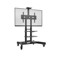 Купить Мобильная стойка на 1 тв мобильная стойка на 1 тв/ 40-70″ от 200х200 до 400х600 наклон 0? поворот 0? макс нагр 60,5кг высота 1200-1500мм, кабель-канал, 2 полки, регулировка полок по высоте, колесики с блокировкой, черная с доставкой по всей России.