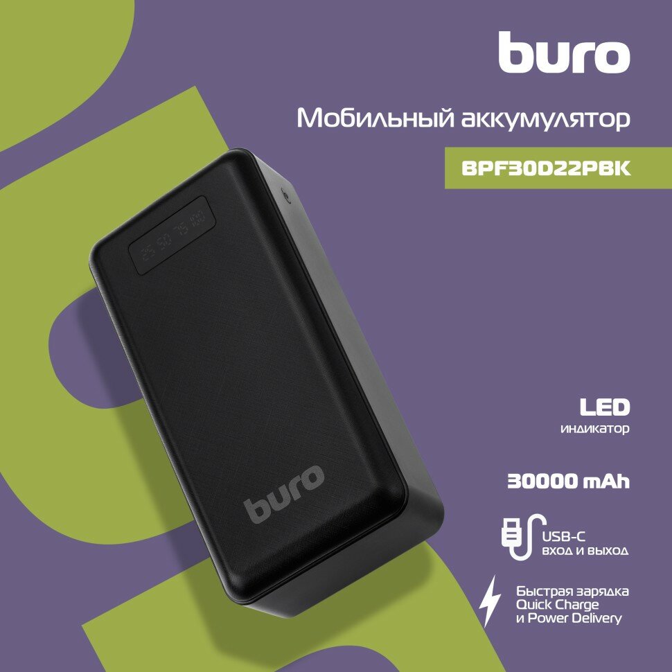Купить Мобильный аккумулятор Buro BPF30D 30000mAh QC4.0/PD3.0 22.5W 4.6A 2xUSB-A/USB-C черный (BPF30D22PBK) с доставкой по всей России.