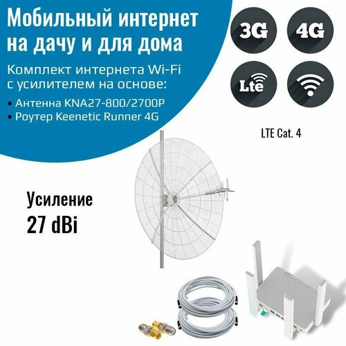 Представляем вашему вниманию — комплект для усиления мобильного интернета из серии «Дача-максимум» на основе WiFi-роутера Keenetic Runner 4G и параболической антенны KROKS KNA27-800/2700P. С его помощью вы сможете быстро решить проблему с нестабильным, прерывающимся или медленным соединением на даче или за городом.