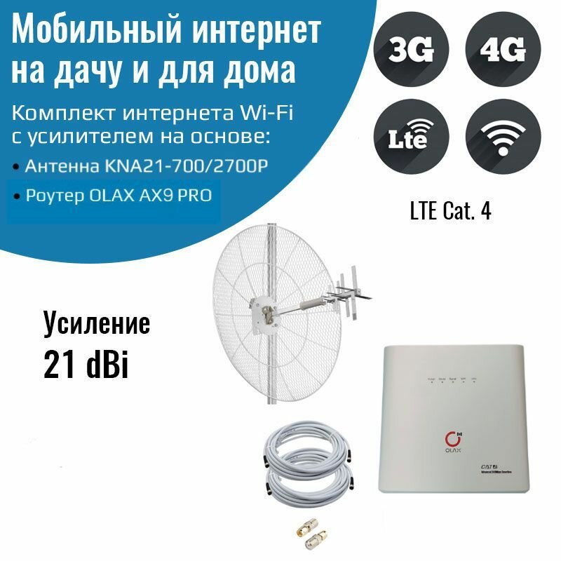 Мобильный интернет на даче, за городом 3G/4G/WI-FI Комплект роутер OLAX AX9 PRO с антенной KNA21-700/2700P: сравнение цен, характеристики, фото, актуальное наличие и цены.