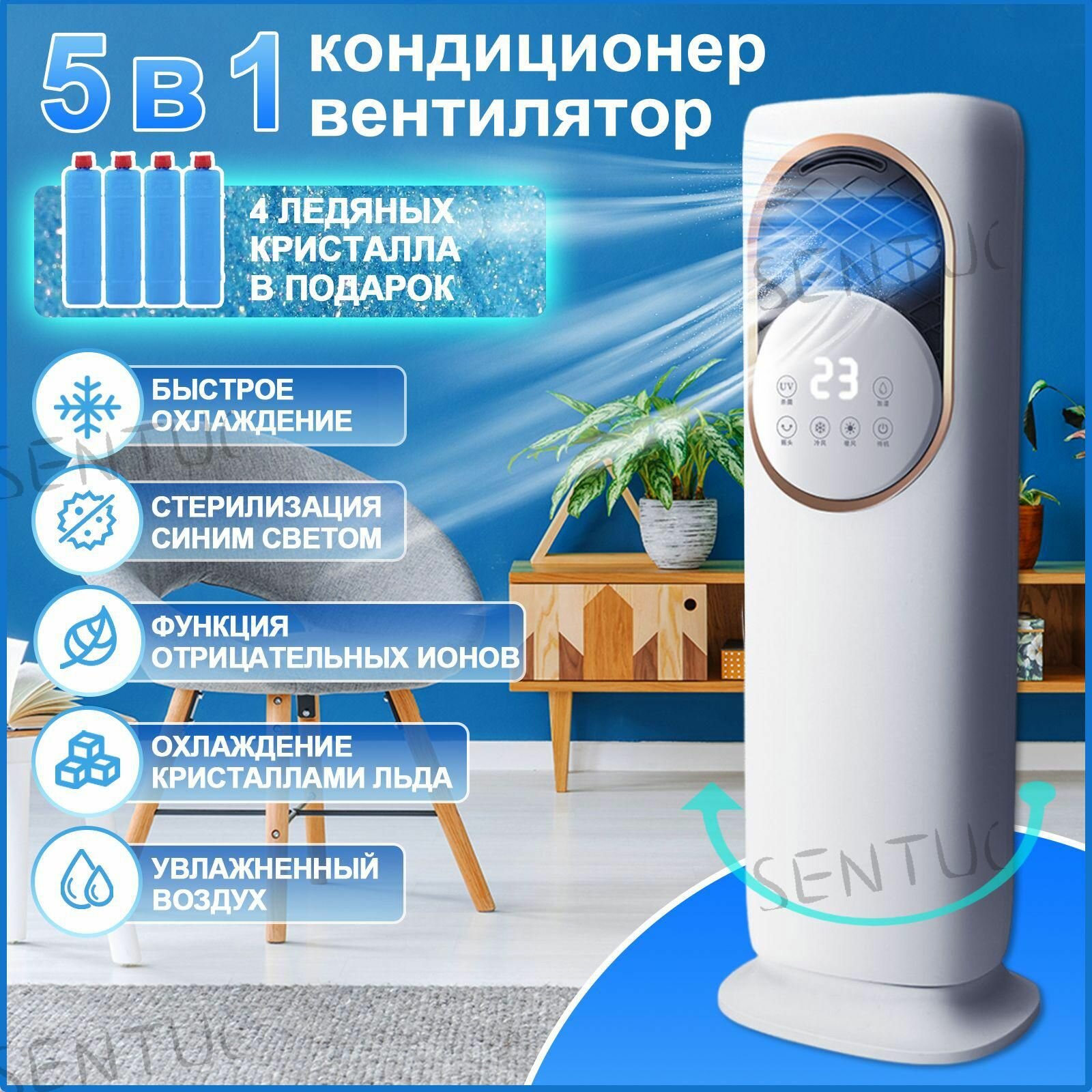 Мобильный кондиционер, 6 BTU, 3 скорости, сенсорное управление, очистка воздуха, пульт ДУ, белый