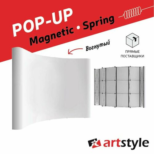 Pop-up — компактная конструкция мобильных стендов в своей основе имеет раскладывающуюся единую решетку с металлическими ребрами, на которые крепятся специальные фотопанели.