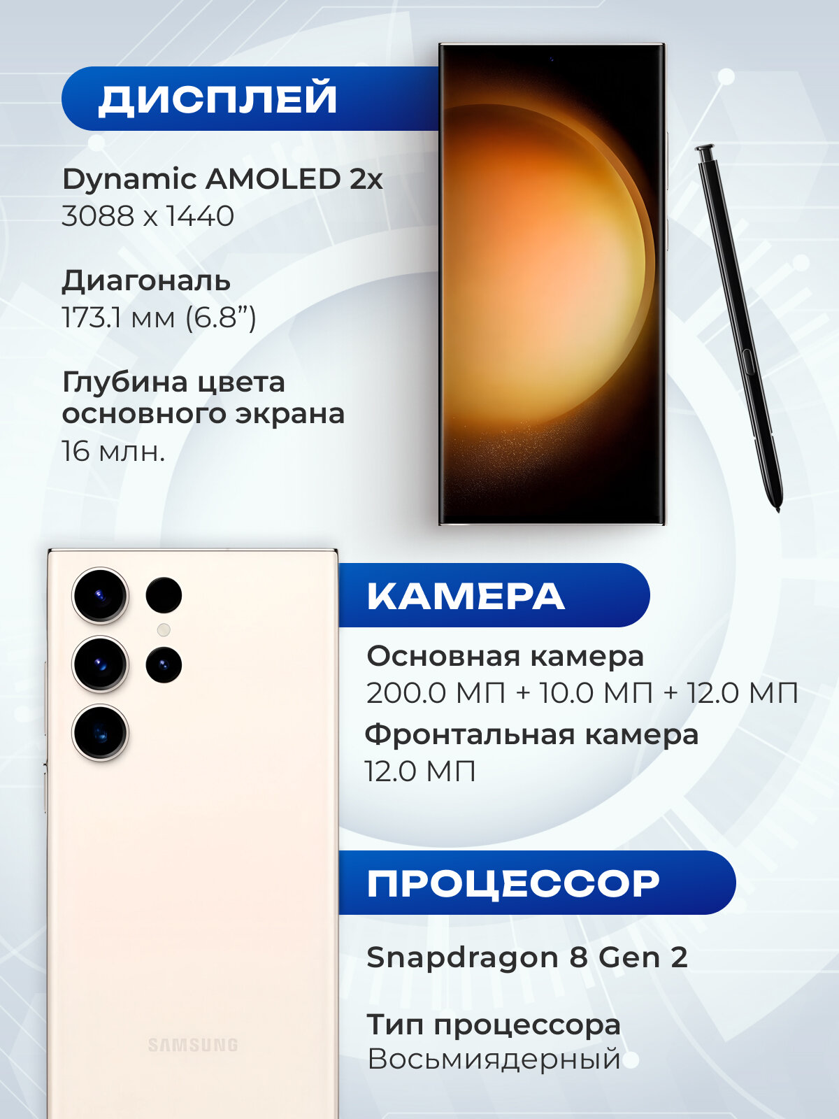 | Дисплей | 6.8" (3088x1440), 2K QHD, Dynamic AMOLED 2X |