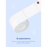 - Термобумага (рулон с этикетками, размер 60 мм x 40 мм, 60 этикеток в рулоне) – 1 шт.