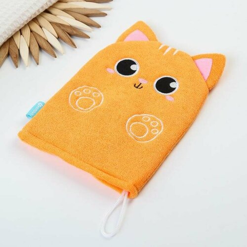 Мочалка детская для купания «Котик», варежка, из махры