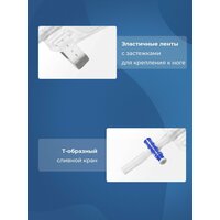 Особенности: — Встроенный антивозвратный клапан; — Т-образный сливной кран; — Мягкая подкладка, обеспечивающая комфорт; — Универсальный коннектор с колпачком; — Эластичные ленты с застежками для крепления как к бедру, так и к голени.