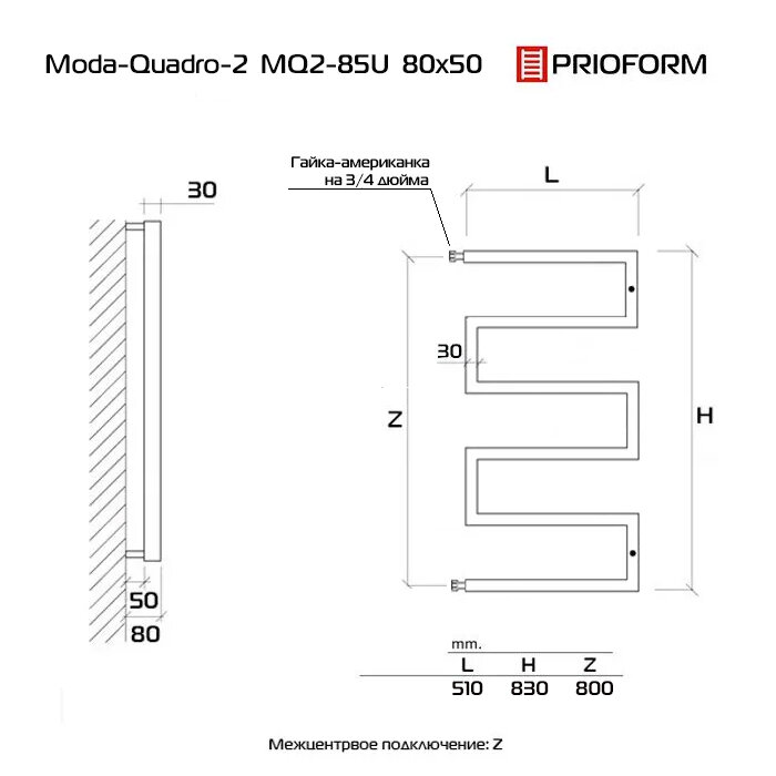 Moda-Quadro-2 80х50 (см) Полотенцесушитель водяной Черный Прямое подключение: сравнение цен, характеристики, фото, актуальное наличие и цены.