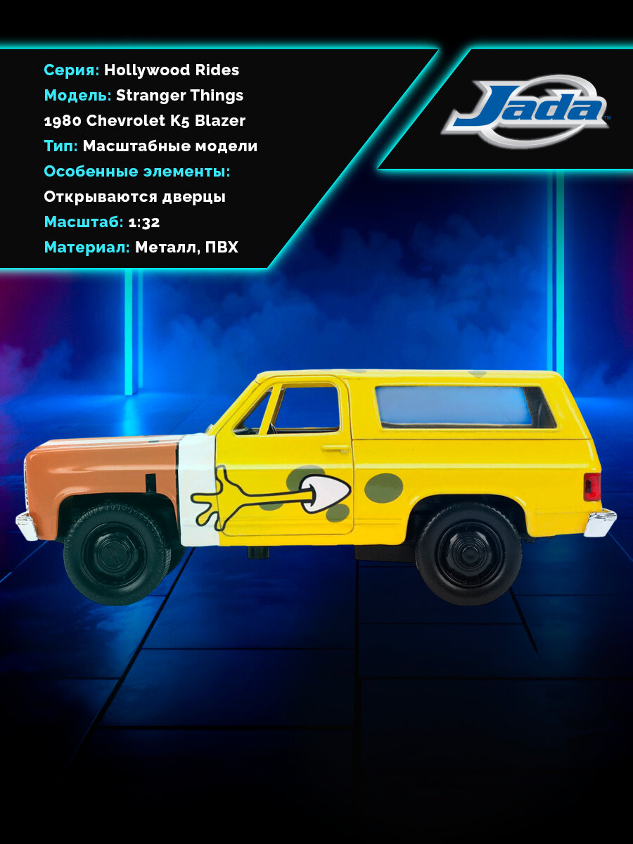 Модель машинки 1:32 Hollywood Rides Очень странные дела 1980 Chevrolet K5 Blazer 0801310330678 по мотивам сериала "Очень странные дела" и мультсериала "Губка Боб квадратные штаны". Характеристики: