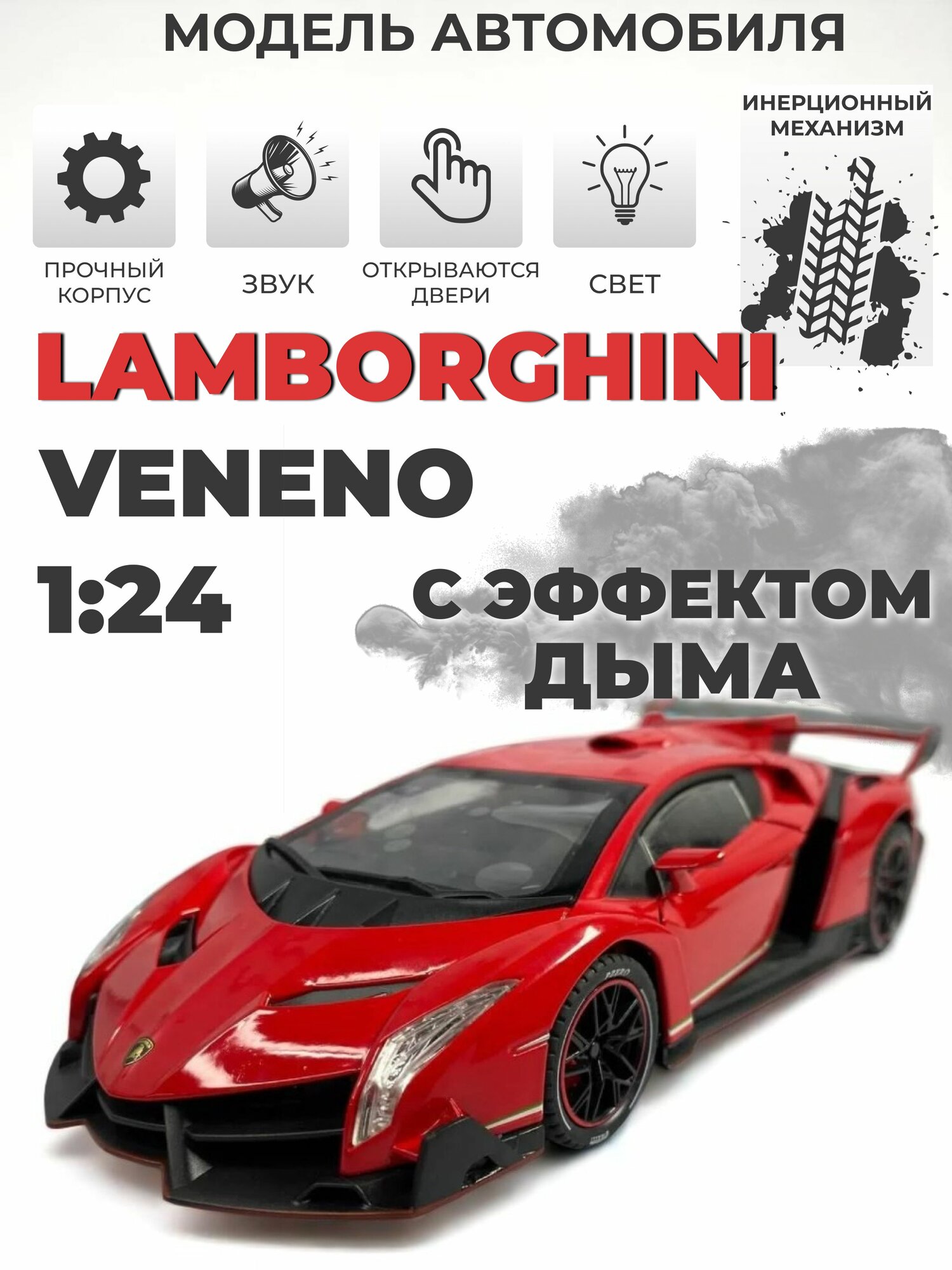 Купить Модель машинки Lamborghini Veneno инерционная 1/24 красная с эффектом дыма с доставкой по всей России.