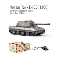 Упаковка - деревянная коробка; Модель Танка Е-100 масштаб 1/100; Брелок Танк Т 34-85