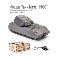 Упаковка - деревянная коробка; Модель Танка Маус масштаб 1/100; Брелок Танк Т 34-85