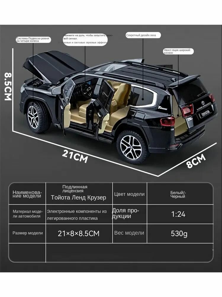 Модель Toyota Land Cruiser чёрного цвета из металла, 1:24, с дистанционным ключом, коллекционная, лицензионная, подарок мальчику: сравнение цен, характеристики, фото, актуальное наличие и цены.