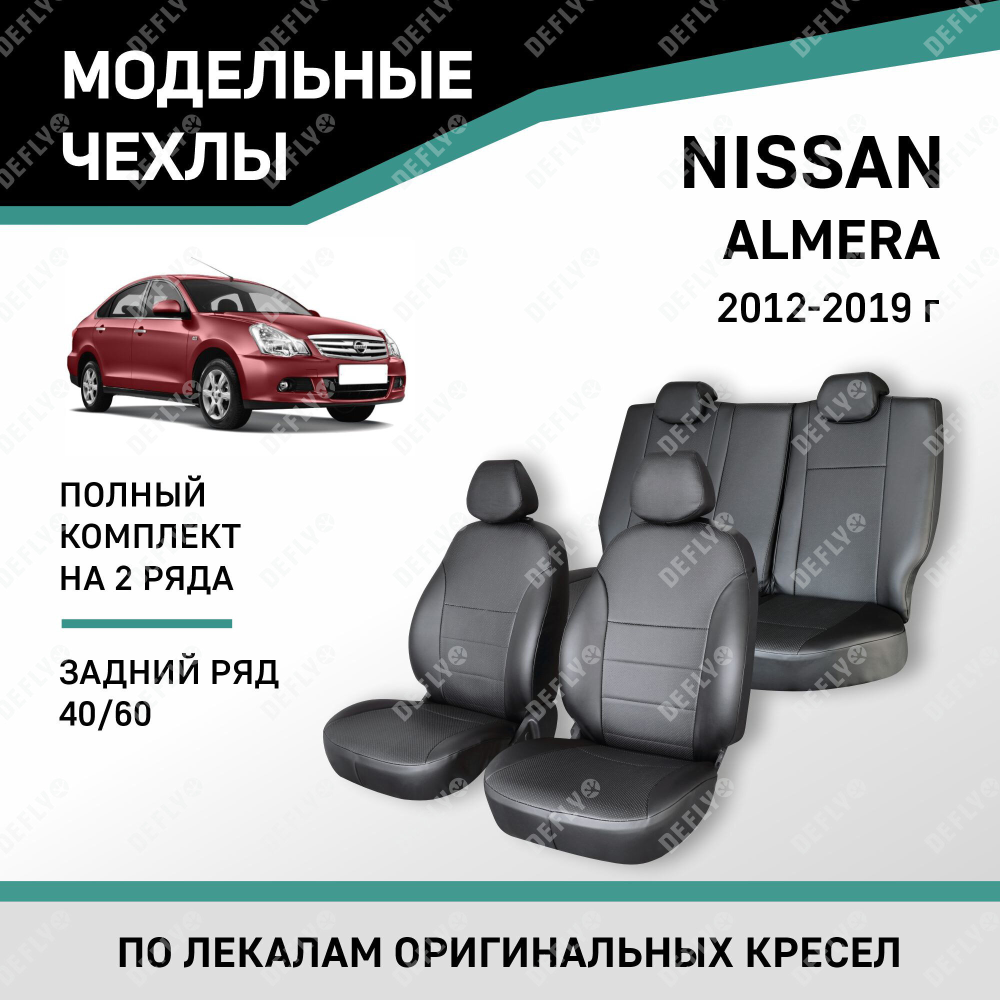 Купить Модельные чехлы на сиденья Defly Nissan Almera 2012-2019 Экокожа Черный задний ряд 40/60 с доставкой по всей России.