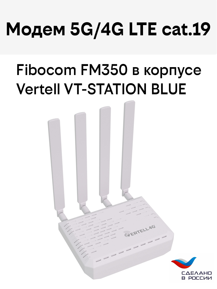 Модем 5G / 4G LTE cat.19 Fibocom FM350 в корпусе Vertell VT-STATION-BLUE с 4 антеннами MIMO 4×4: сравнение цен, характеристики, фото, актуальное наличие и цены.