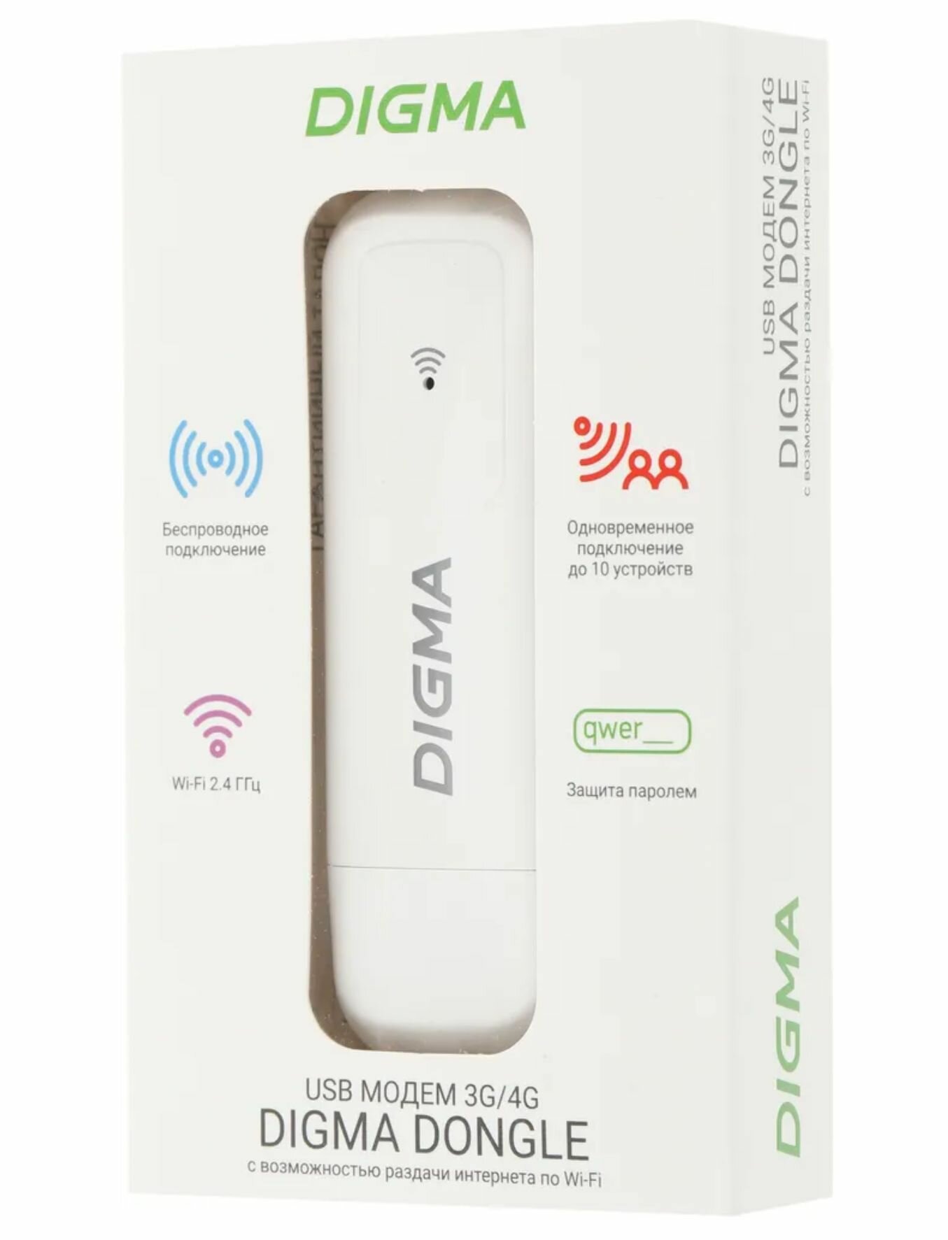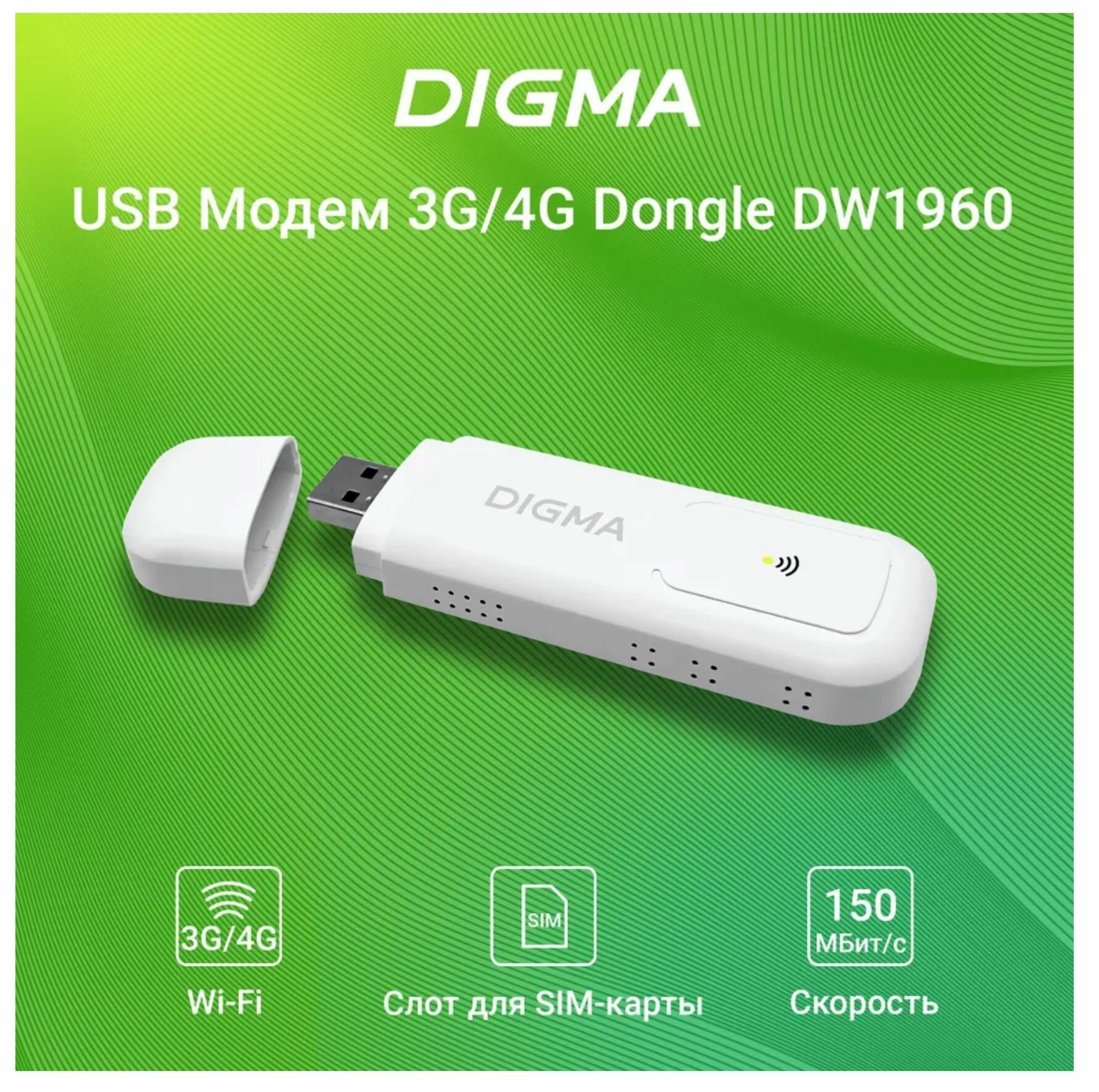 Название товара: Модем Digma Dongle Wi-Fi DW1960 3G/4G, внешний, белый [dw1960wh]. Категория товара: Модемы Артикул производителя/код товара: DW1960WH Бренд: DIGMA