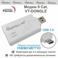 Модем Vertell VT-DONGLE в корпусе на базе Fibocom L850-GL — модем в компактном исполнении, разработанный для использования в бытовой и промышленной электронике. Модем поддерживает категорию LTE Cat. 9 и способен загружать данные на скорости до 450 Мбит/с. Высокая скорость достигается агрегацией трех полос частот и использованием режима MIMO.