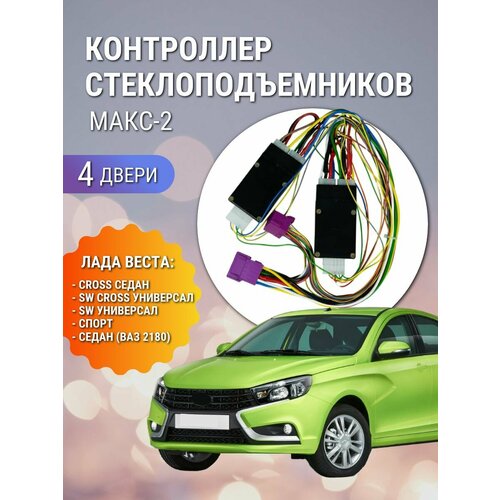 Комплект модуля МАКС-2 Vesta оснащён жгутом проводов со разъёмами для подключения без нарушения штатной проводки к кнопкам стеклоподъёмников автомобилей LADA Vesta. Контроллер МАКС-2 Vesta предназначен для автоматического управления двумя стеклоподъёмниками автомобиля. МАКС-2 устанавливается в автомобили LADA Vesta, в которых коллекторные двигатели стеклоподъёмников управляются кнопками напрямую. Полный набор функций обеспечивается при подключении контроллера МАКС-2 Vesta к охранной сигнализации или центральному замку автомобиля.