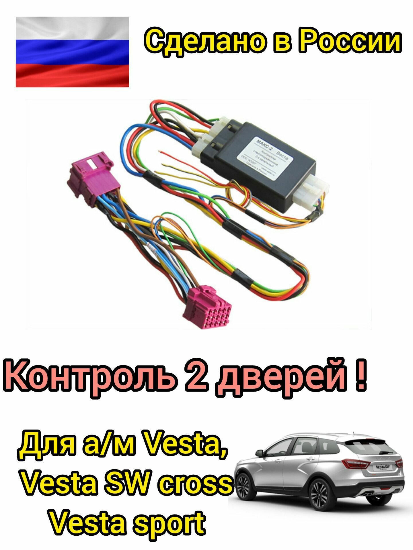 МАКС-2 устанавливается в автомобили LADA Vesta, в которых коллекторные двигатели стеклоподъёмников управляются кнопками напрямую. Полный набор функций обеспечивается при подключении контроллера МАКС-2 Vesta к охранной сигнализации или центральному замку автомобиля.