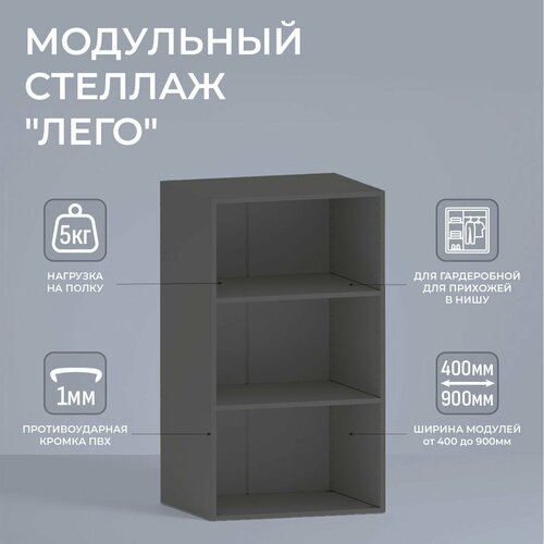 Модуль для гардеробной «Лего» Стеллаж модульный Л2.15 2 полки 105,3х90х49 см Серый: сравнение цен, характеристики, фото, актуальное наличие и цены.