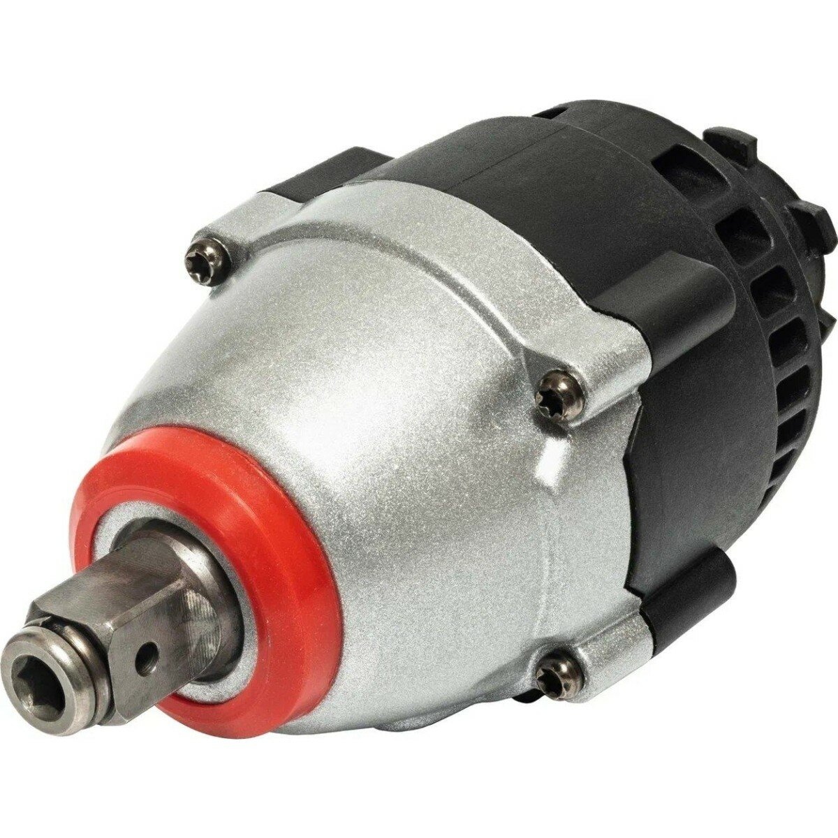 Ударный тангенциальный гайковерт с квадратным хвостовиком 1/2" дюйма работает со стандартной оснасткой - торцевыми головками, Вращающий момент образуется за счет соударения на каждом обороте в ударной муфте частей редуктора, называемых молот и наковальня. За счет разницы масс самого инструмента и закручиваемой оснастки, которая обычно достигает 100 и более раз и возникает эффект, когда крупный крепеж можно завернуть или отвернуть, всего лишь слегка придерживая инструмент. Сила затяжки регулируется за счет ограничения длительности воздействия (количества ударов). Реактивный момент отсутствует.