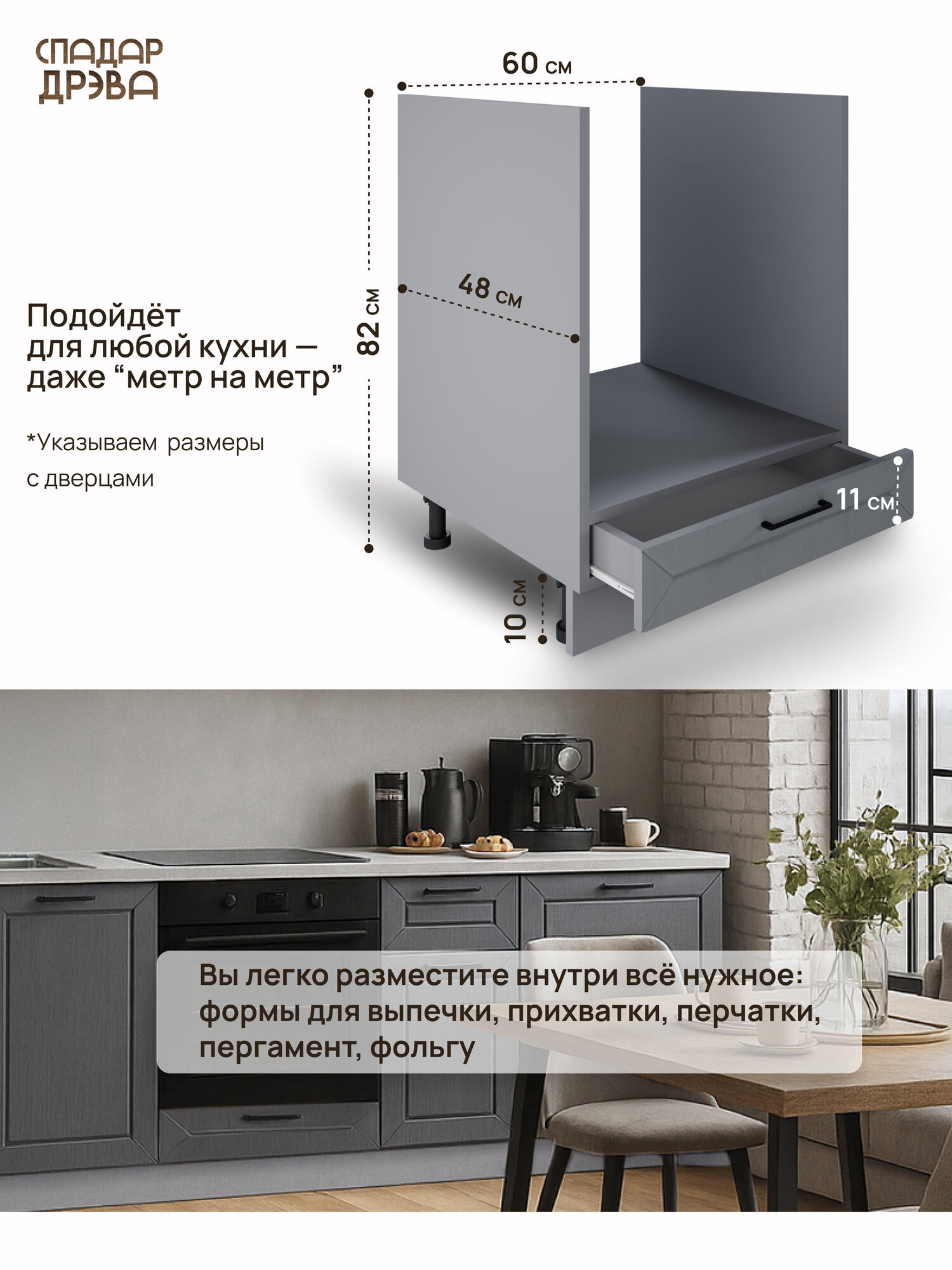 Купить Модуль кухонный напольный под духовку, СпадарДрэва, модульная кухня, 600х480х820 мм, МДФ с доставкой по всей России. Модуль кухонный напольный под духовку, СпадарДрэва, модульная кухня, 600х480х820 мм, МДФ: сравнение цен, характеристики, фото, актуальное наличие и цены.
