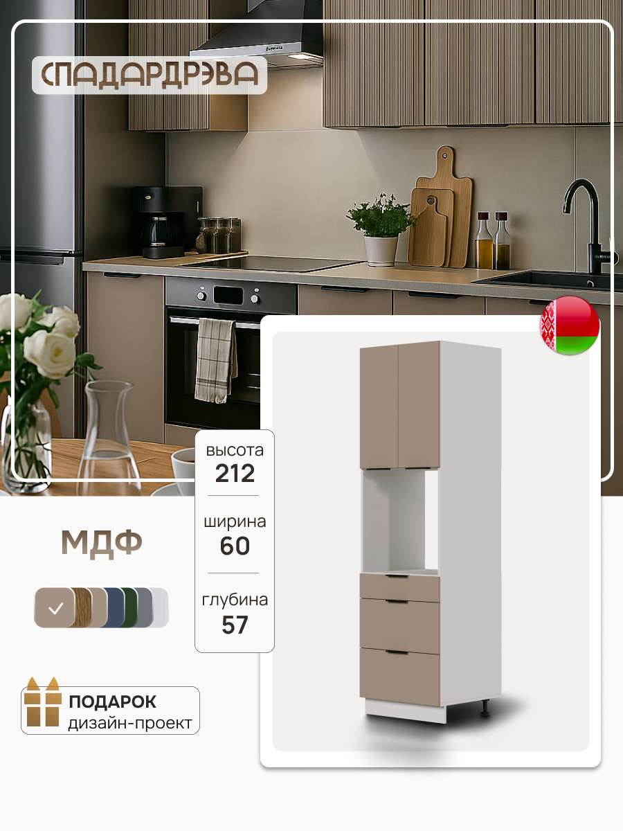 Купить Модуль кухонный напольный шкаф пенал, СпадарДрэва, модульная кухня, 600х570х2120 мм, МДФ с доставкой по всей России.