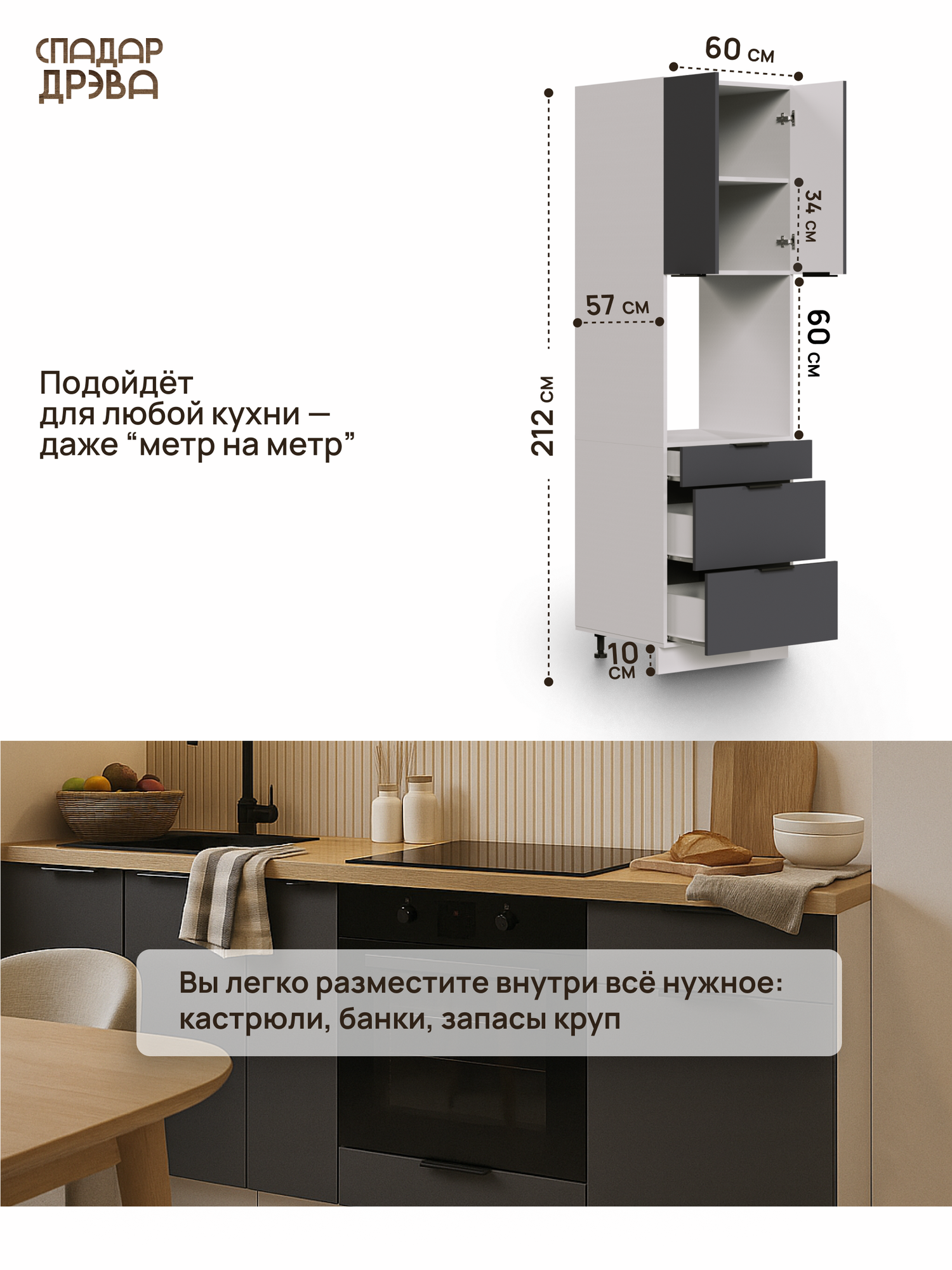 Модуль кухонный напольный шкаф пенал, СпадарДрэва, модульная кухня, 60х57х212 см, МДФ: сравнение цен, характеристики, фото, актуальное наличие и цены.