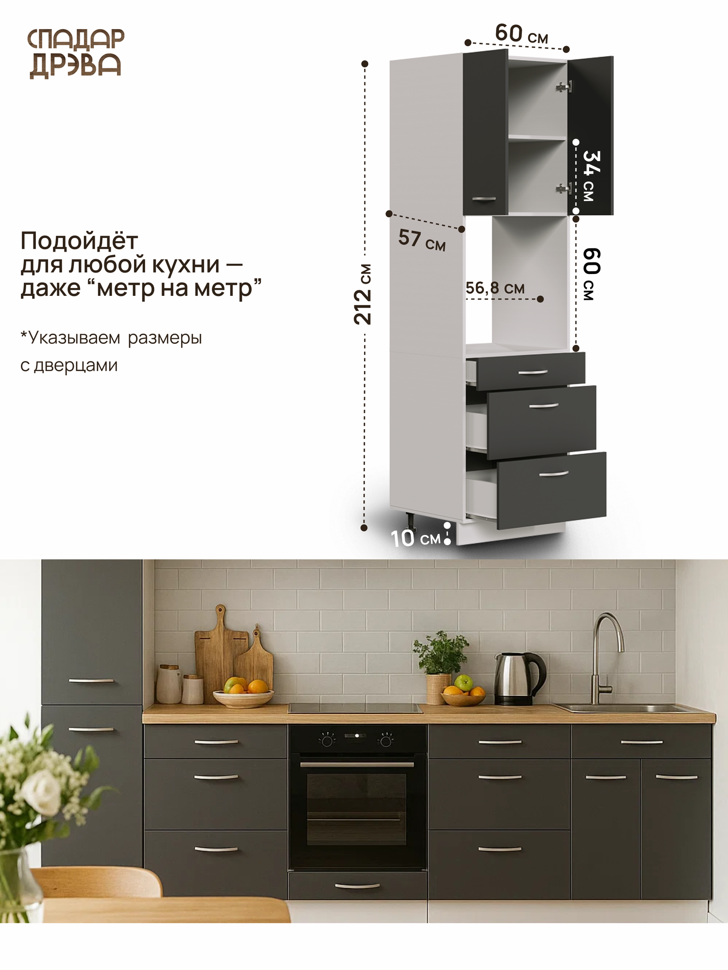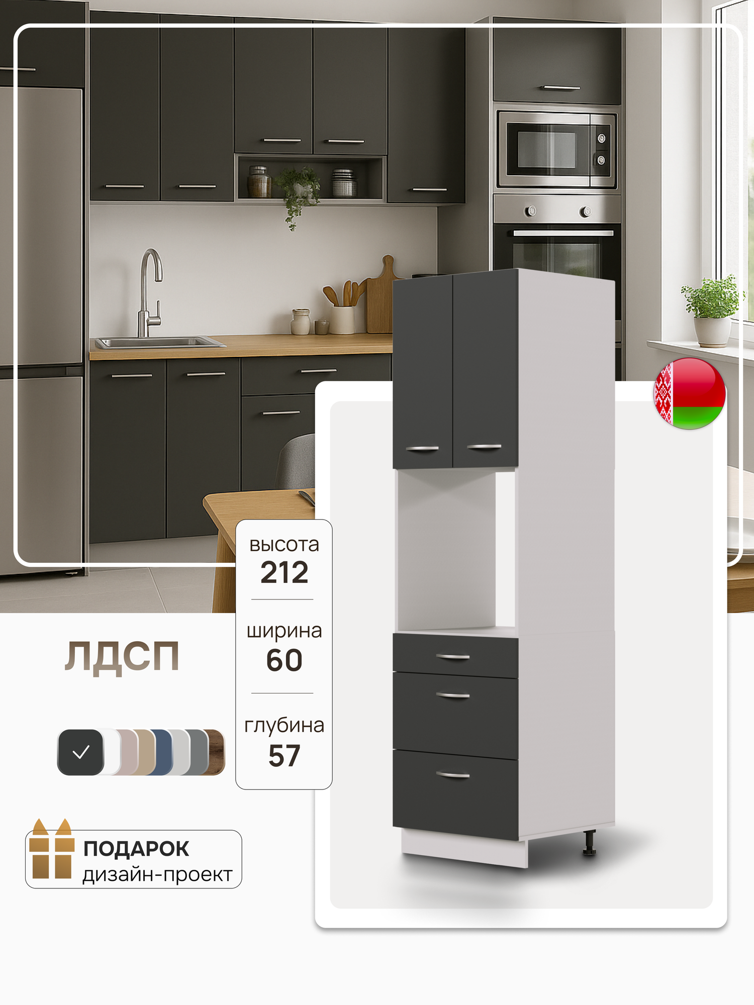 Модуль кухонный напольный шкаф пенал, СпадарДрэва, модульная кухня, 60x57x212 см, ЛДСП: сравнение цен, характеристики, фото, актуальное наличие и цены.