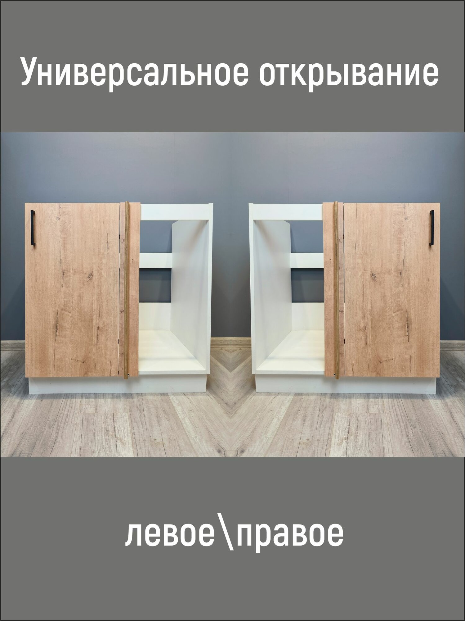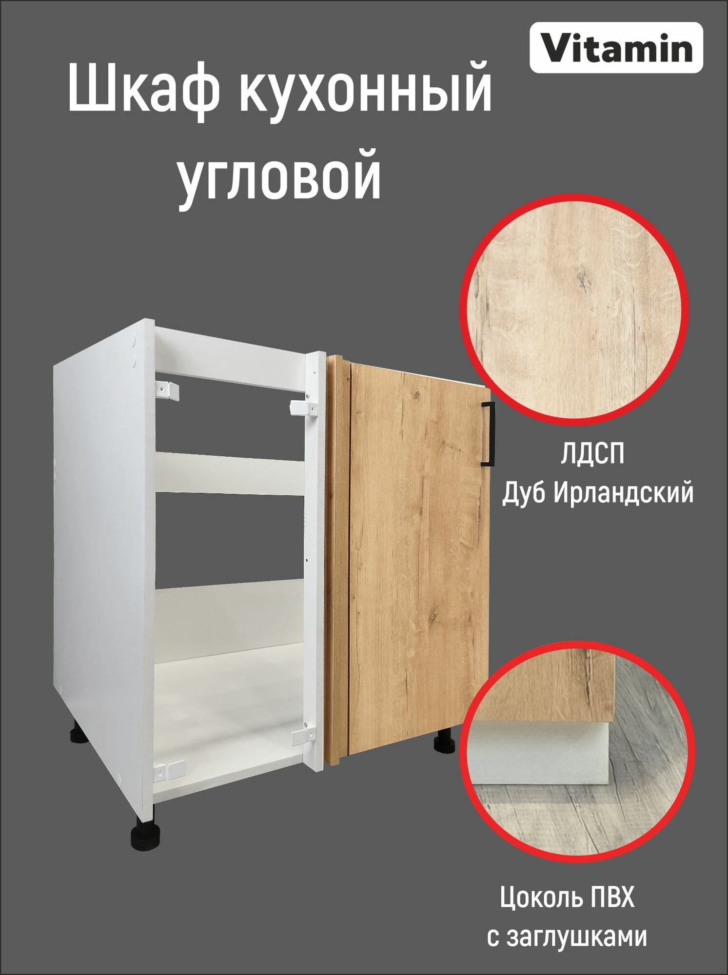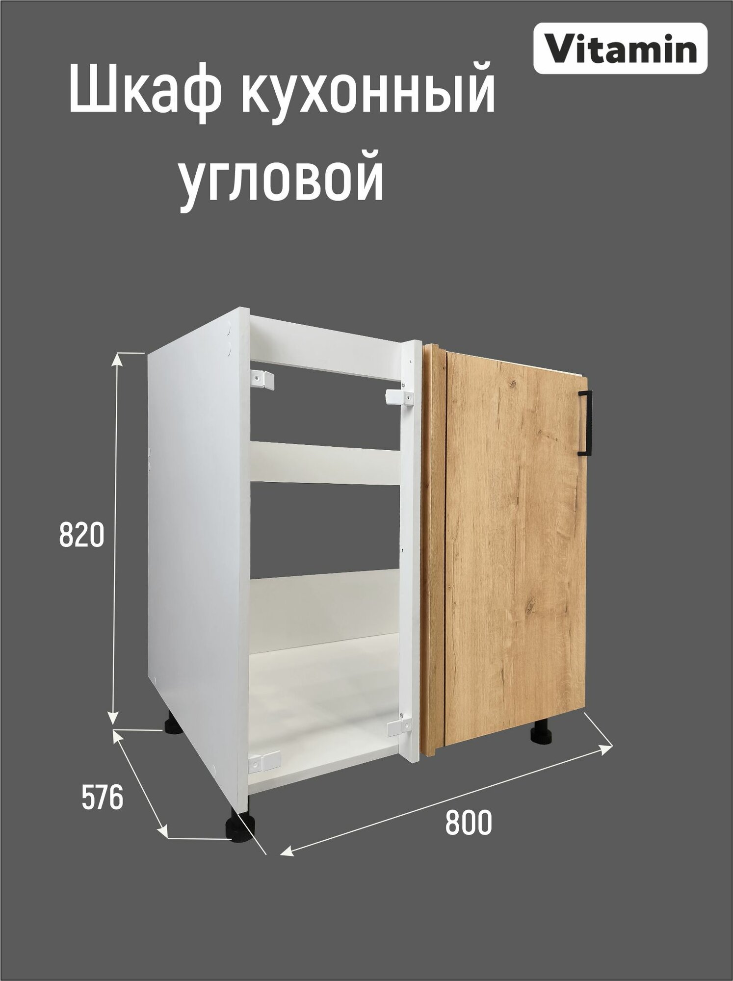 Поставляется без столешницы! Кухонный гарнитур " Агат" имеет в составе угловой модуль под мойку, который позволяет использовать пространство помещения по максимуму . Шкаф кухонный угловой напольный шириной 1000 мм очень функционален и может быть использован как шкаф для посуды на кухне, кухонный шкаф для посуды или шкаф для хранения вещей на кухне. Также шкаф угловой кухонный может служить как шкаф-пенал, тумба под раковину, стол кухонный, шкаф для хранения продуктов. Шкаф кухонный угловой стыковочный впишется в любой стиль: лофт, минимализм, модерн, скандинавский, эко. Корпус и фасады кухонных шкафов изготовлены из высококачественной ЛДСП класса Е1. А это значит, что мебель полностью соответствует международным стандартам ГОСТ по экологическим показателям и безопасна даже для изготовления детской мебели. Для отделки торцов использована кромка ПВХ толщиной 1 мм. Тумба кухонная под мойку оснащена качественной фурнитурой с доводчиками для плавного закрывания дверки. Надежная фурнитура рассчитана на многократное интенсивное использование. В секции кухонного модуля нет полок, что позволяет провести коммуникации. Пространство под тумбой закрыто цоколем, что предотвращает скопление мусора под ней. Декоративный съемный цоколь высотой 100 мм, за которым скрываются регулируемые ножки, идет в комплекте со шкафом угловым для стыковки. Дверцы украшены оригинальными ручками черного цвета. Глубина для хранения составляет 56 см: шкаф отлично подойдет для хранения посуды, кухонных принадлежностей, продуктов, мелкой бытовой техники. Шкаф напольный не требует специфического ухода: для удаления жирных пятен достаточно использовать мягкое моющее средство. Габариты кухонного модуля в сборе без столешницы (ШхВхГ): 800 x 820 x 580 мм. Столешница толщиной 26мм в комплект не входит и приобретается отдельно . При комплектации столешницей ширина шкафа углового кухонного составит 1000 мм по столешнице. Это очень важно учитывать при проектировании кухни. Материал корпуса: ЛДСП. Материал фасада: ЛДСП. В ассортименте представлен шкаф кухонный белый. Шкаф напольный угловой поставляется в разобранном виде. В комплект входит подробная инструкция по сборке и необходимая крепежная фурнитура. Тумба совместима с другими модулями VITAMIN, что позволяет самостоятельно смоделировать кухонный гарнитур нужной конфигурации, подходящий именно Вам. Добавив другие кухонные шкафы напольные и кухонные шкафы навесные нужных размеров, можно обустроить красивую и эргономичную кухню. В коллекции мебели для кухни VITAMIN вы найдете шкафы под кухонную мойку, напольные шкафы и навесные модульные кухонные шкафы размером 400, 600 и 800 мм.