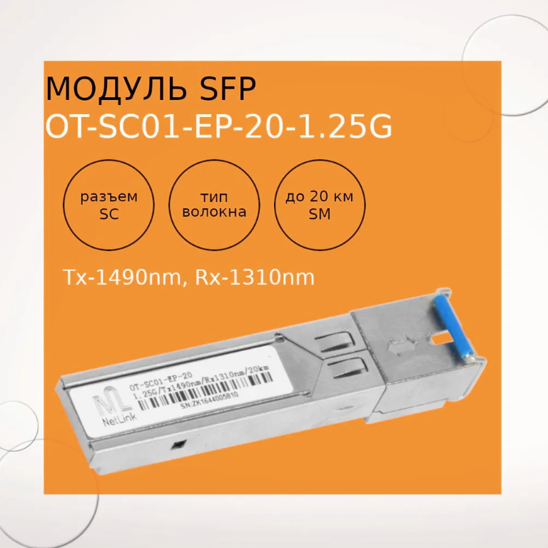 Купить Модуль NetLink SFP-OT-SC01-EP-20-1.25G/Tx1490nm/Rx1310/20km с доставкой по всей России. Модуль NetLink SFP-OT-SC01-EP-20-1.25G/Tx1490nm/Rx1310/20km: сравнение цен, характеристики, фото, актуальное наличие и цены.