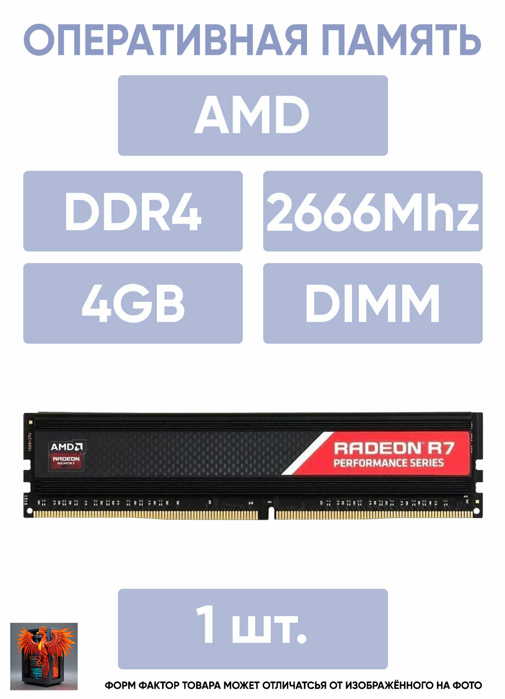 Модуль памяти 4GB AMD Radeon DDR4 2666 Dimm R7 Performance Series Black Gaming Memory R7s48g2606u1k .: сравнение цен, характеристики, фото, актуальное наличие и цены.