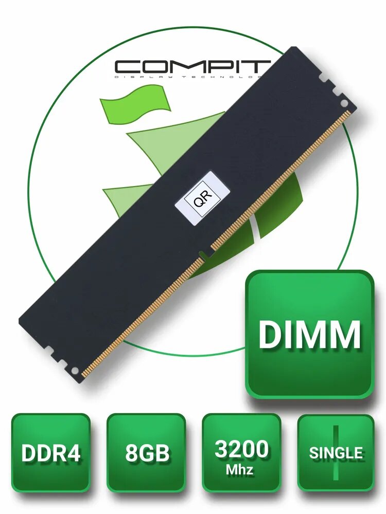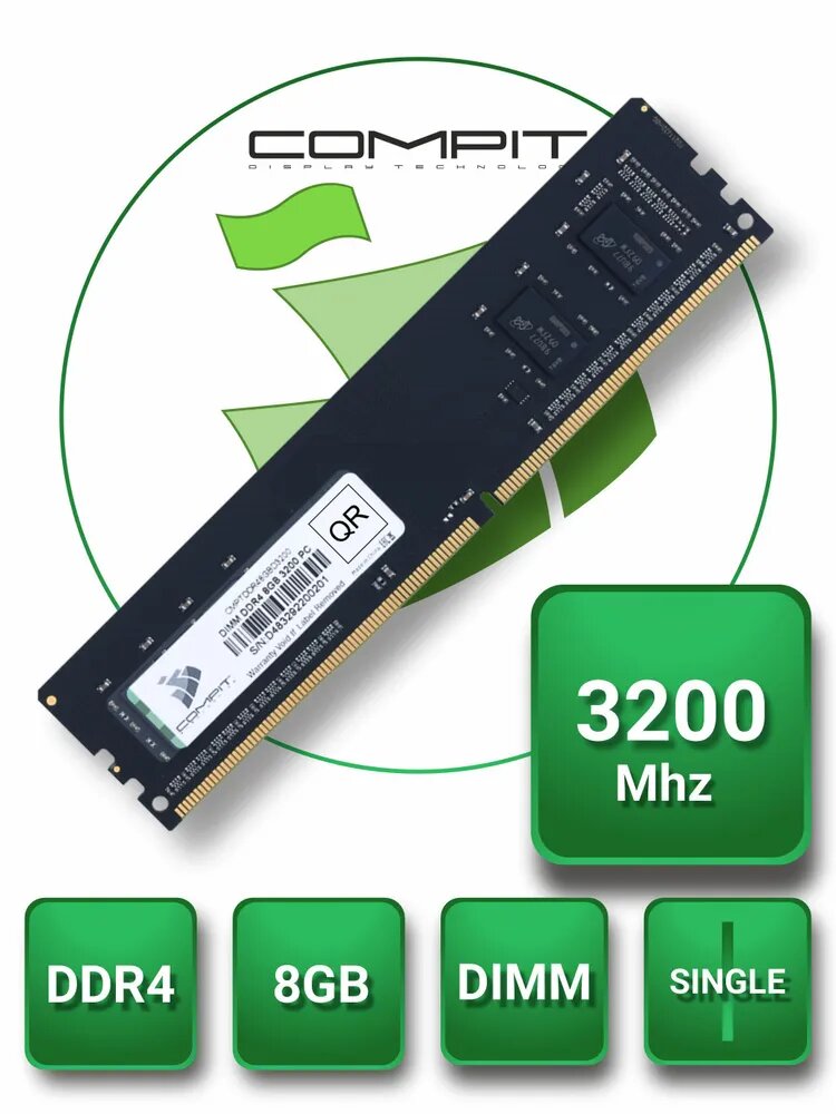 Оперпамять Compit DDR4 8GB DIMM 3200MHz имеет 8-гигабайтовый модуль, высоту в 31.25 мм, ее отличает современный продуктивный тип DDR 4, обеспечивающий большую, по сравнению с DDR3 энергоэффективность и пропускную способность, так что даже в условиях многозадачности система гарантирует хороший отклик. На это же работает и диапазон рабочих частот до 3200 МГц. Энергопотребление с напряжением 1,2 В, без радиатора охлаждения так как исключён перегрев микросхем. Оперативно запоминающее устройство является ключевым компьютерным элементом для оптимизации и быстроты работы запущенных программ на стационарном компьютере или игровом ноутбуке. От его параметров зависит насколько хорошо ПК будет справляться со своими задачами. Наша оперативная память позволит Вам в полной мере наслаждаться новейшими играми, запускать больше операций одновременно, загружать ускорено приложения, требующие дополнительных объемов данных. Все видеоигровые процессы начнут обрабатываться более быстро и качественно благодаря оперативке. Используя наши высокотехнологичные комплектующие, Вы перестанете на своих samsung (самсунг), msi, Kingston, aser, lenowo, azerty, asus сталкиваться с лагами, торможениями, медленными реакциями. Отличный подарок на День рождения, Новый год мужу, парню, сыну, племяннику, жене, другу, и вообще любому увлеченному геймеру. Наш товар долговечен и надежен, с ним Вы сможете узнать и понять все возможности Вашего аппарата, заметно увеличив его скорость.