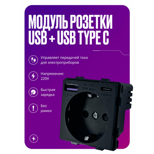Купить Модуль розетки на 16А с USB и Type C портами на 20W с заземлением и защитой от детей, черный с доставкой по всей России. Модуль розетки на 16А с USB и Type C портами на 20W с заземлением и защитой от детей, черный: сравнение цен, характеристики, фото, актуальное наличие и цены.