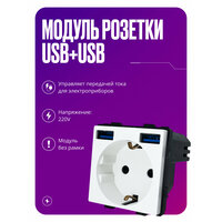 Модуль розетки с USB+USB на 16A с заземлением и шторками, для рамки, белого цвета: сравнение цен, характеристики, фото, актуальное наличие и цены.
