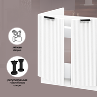 Шкаф кухонный напольный одно или двух-дверный подойдет для небольших квартир, домов, для дачи и летних веранд. Шкаф настенный для кухни впишется в любой стиль: лофт, минимализм, модерн, скандинавский, эко. Корпус и фасады шкафов кухонных изготовлены из высококачественной ЛДСП класса Е1. А это значит, что мебель полностью соответствует международным стандартам ГОСТ по экологическим показателям и безопасна даже для изготовления детской мебели. Для отделки торцов использована кромка ПВХ толщиной 1 мм. Шкаф напольный оснащен качественной фурнитурой с доводчиками для плавного закрывания дверки. Надежная фурнитура рассчитана на многократное интенсивное использование. В секции кухонного модуля расположены две полки. Дверцы шкафа украшены оригинальными ручками черного цвета. Глубина для хранения составляет 52 см: шкаф отлично подойдет для хранения посуды, кухонных принадлежностей, продуктов, мелкой бытовой техники. Напольный шкаф универсальный не требует специфического ухода: для удаления жирных пятен достаточно использовать мягкое моющее средство. Материал корпуса: ЛДСП. Материал фасада: МДФ. Шкаф напольный 1 или 2-дверный поставляется в разобранном виде. В комплект входит подробная инструкция по сборке и необходимая крепежная фурнитура.