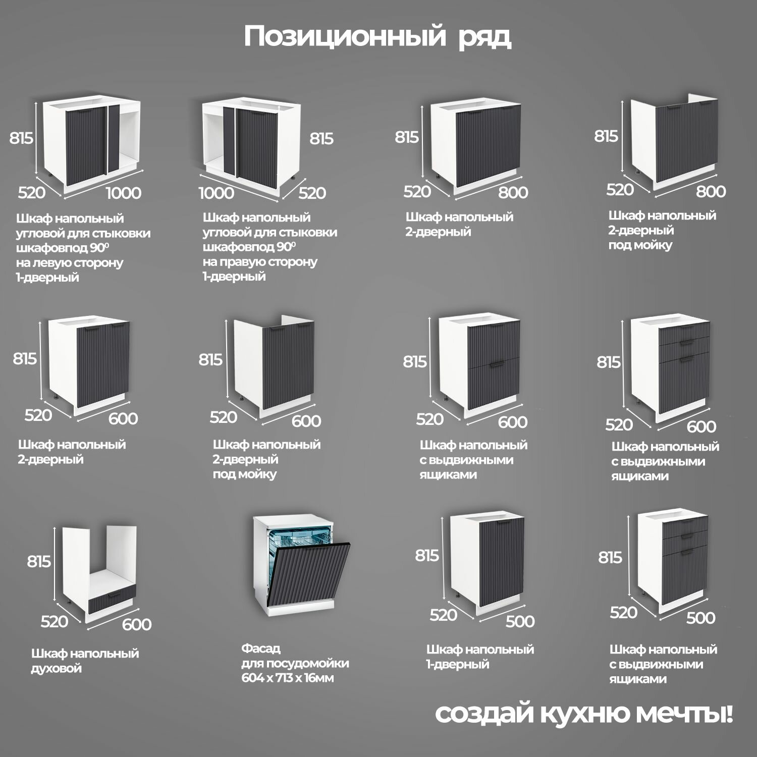 Шкаф напольный с 2-х дверьми 600 мм Модульная кухня Nord Line цвет фасада графит: сравнение цен, характеристики, фото, актуальное наличие и цены.