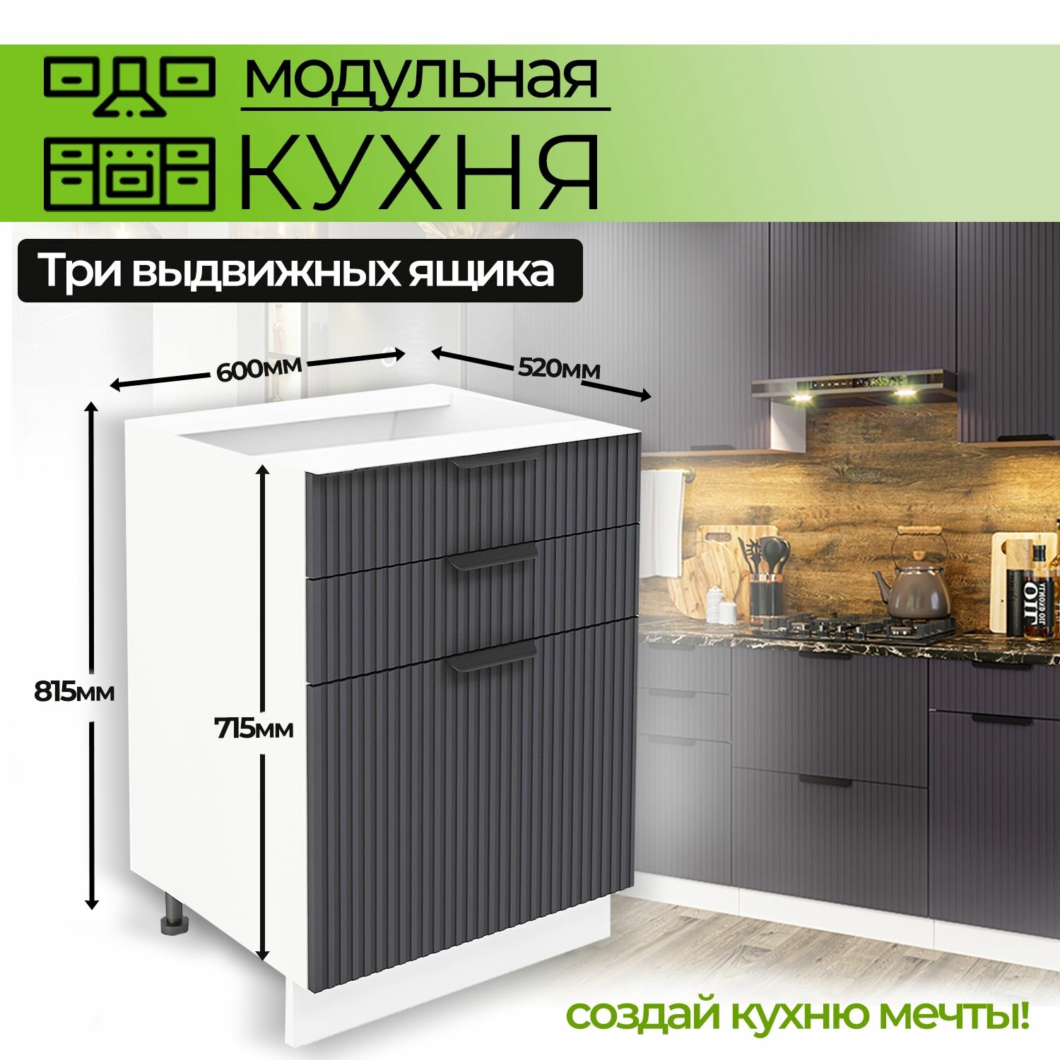 Модульная кухня шкаф напольный с 3 ящиками 600 мм: сравнение цен, характеристики, фото, актуальное наличие и цены.