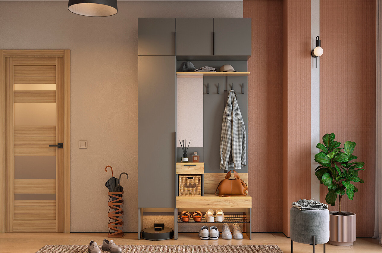 Модульная прихожая «Баско» К4, цвет Графит/дуб крафт золотой, 120*35*235 см, Mebelson: сравнение цен, характеристики, фото, актуальное наличие и цены.