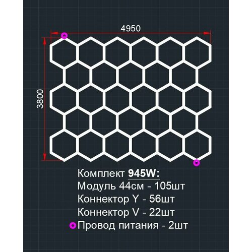 Модульное LED освещение 3.8х4.95м соты 945W/3000К тёплый отттенок (лампы 44см) AVstore. Светильник для детейлинга, автомойки, салона, гаража, коммерции, ресторана, барбершопа