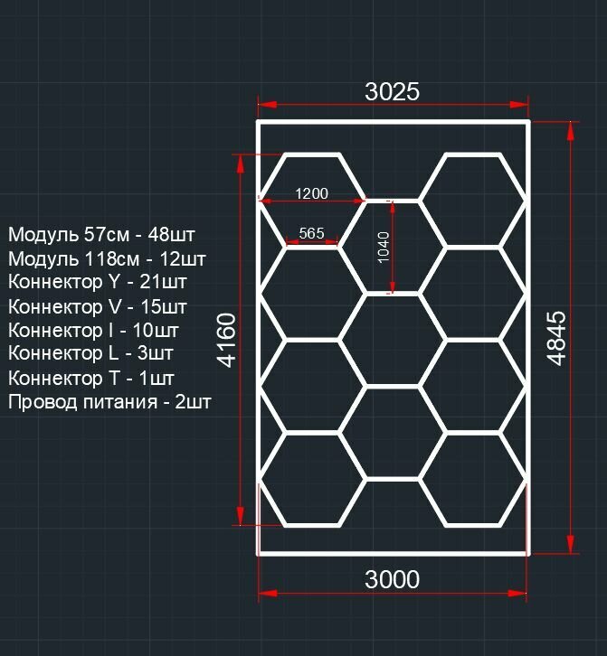 Купить Модульное LED освещение 3×4.85м 805W/6500К. Светильник соты для детейлинга, автомойки, салона, гаража, коммерции, барбершопа. Светодиодная люстра потолочная, настенная. с доставкой по всей России.
