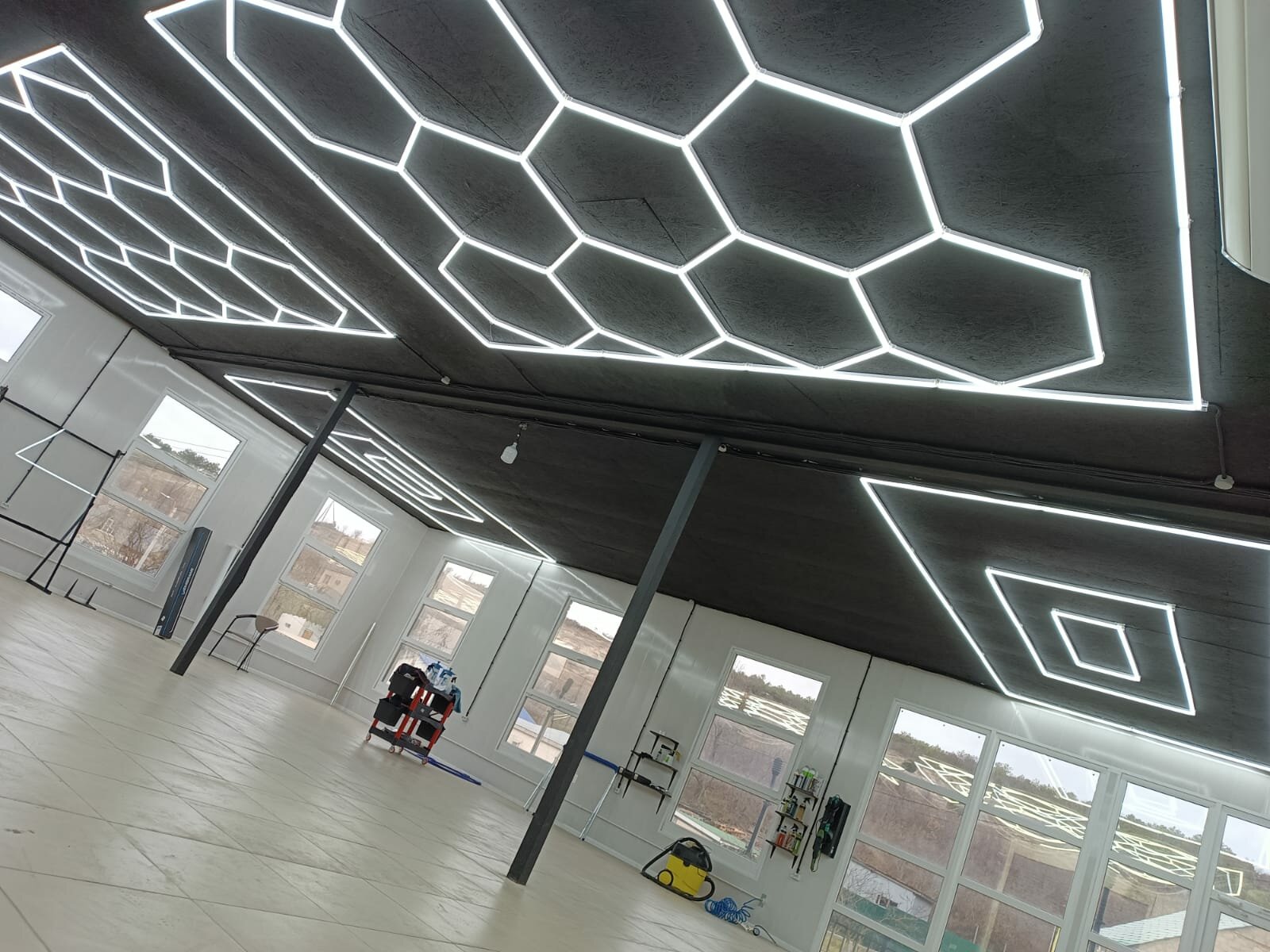 Модульное LED освещение 3×4.85м 805W/6500К. Светильник соты для детейлинга, автомойки, салона, гаража, коммерции, барбершопа. Светодиодная люстра потолочная, настенная.