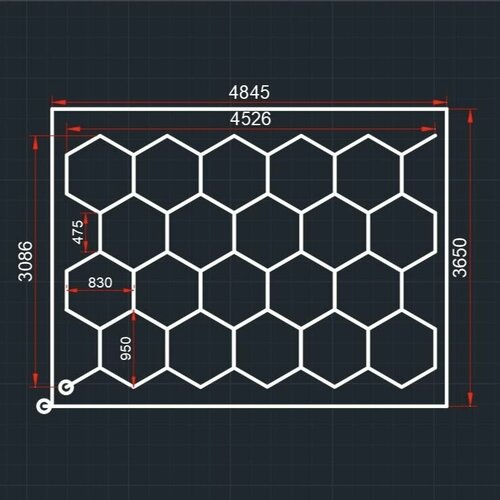 Модульное LED освещение 4.85×3.65м 965W/3000К тёплый свет «соты+прямоугольник». Светильник в виде сот для детейлинга, автомойки, салона, гаража, коммерции, ресторана, барбершопа