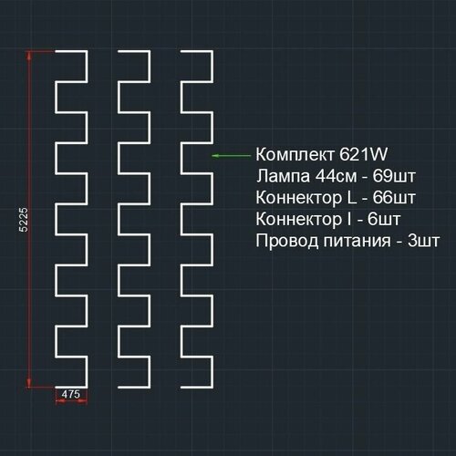 Модуль 440мм - 79 шт Коннектор - 60 шт Провод для подключения - 2 шт Хомут нейлон - 1 уп Инструкция - 1 шт
