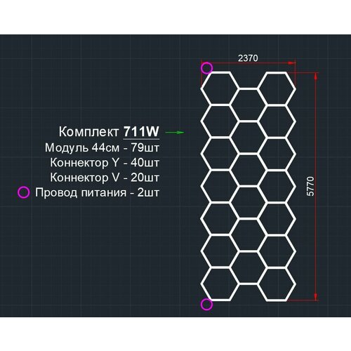 Модульное LED освещение соты 2.37х5.77м 711W/6500К холодный белый. Светильник для детейлинга, автомойки, салона, гаража, коммерции, ресторана, барбершопа