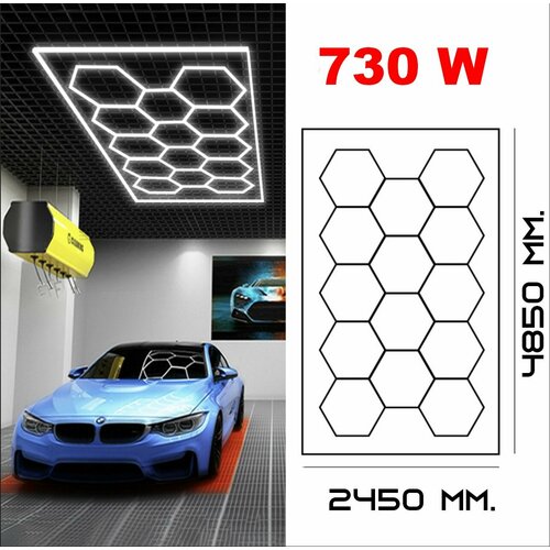 Модульное светодиодное освещение соты 730 W/ 220V — комплект 2450х4850 мм. / KAEF. Light/ Светильник для детейлинга, для автомойки, для автосалона, гаража, барбершопа, для автосервиса IP64: сравнение цен, характеристики, фото, актуальное наличие и цены.