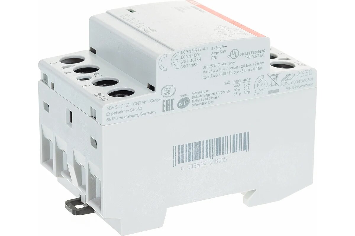Контактор ABB ESB40-40N-06 модульный 40А АС-1, 4НО, катушка 230В AC/DC 1SAE341111R0640: сравнение цен, характеристики, фото, актуальное наличие и цены.