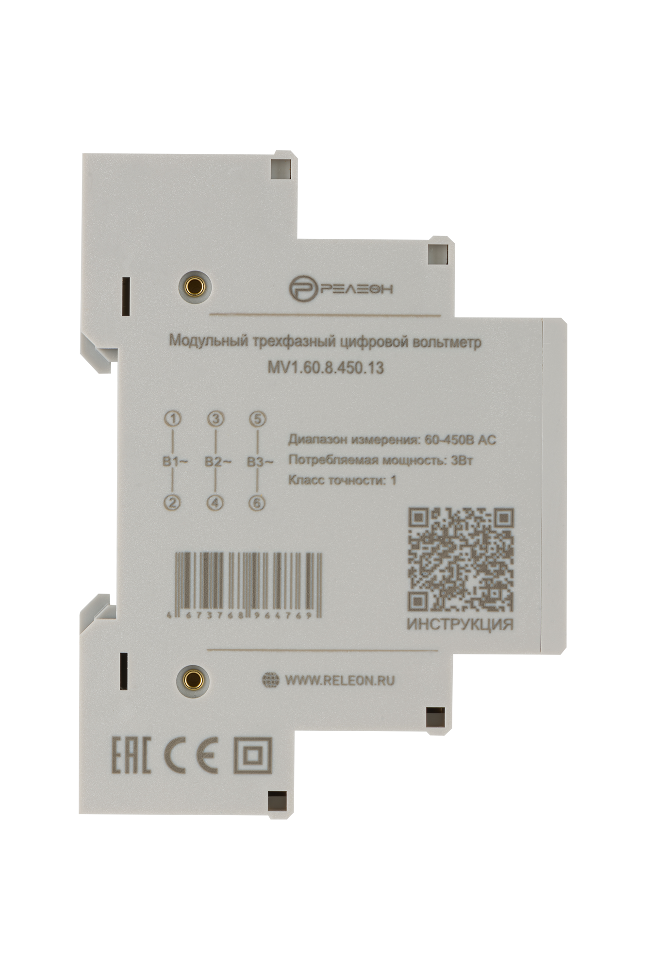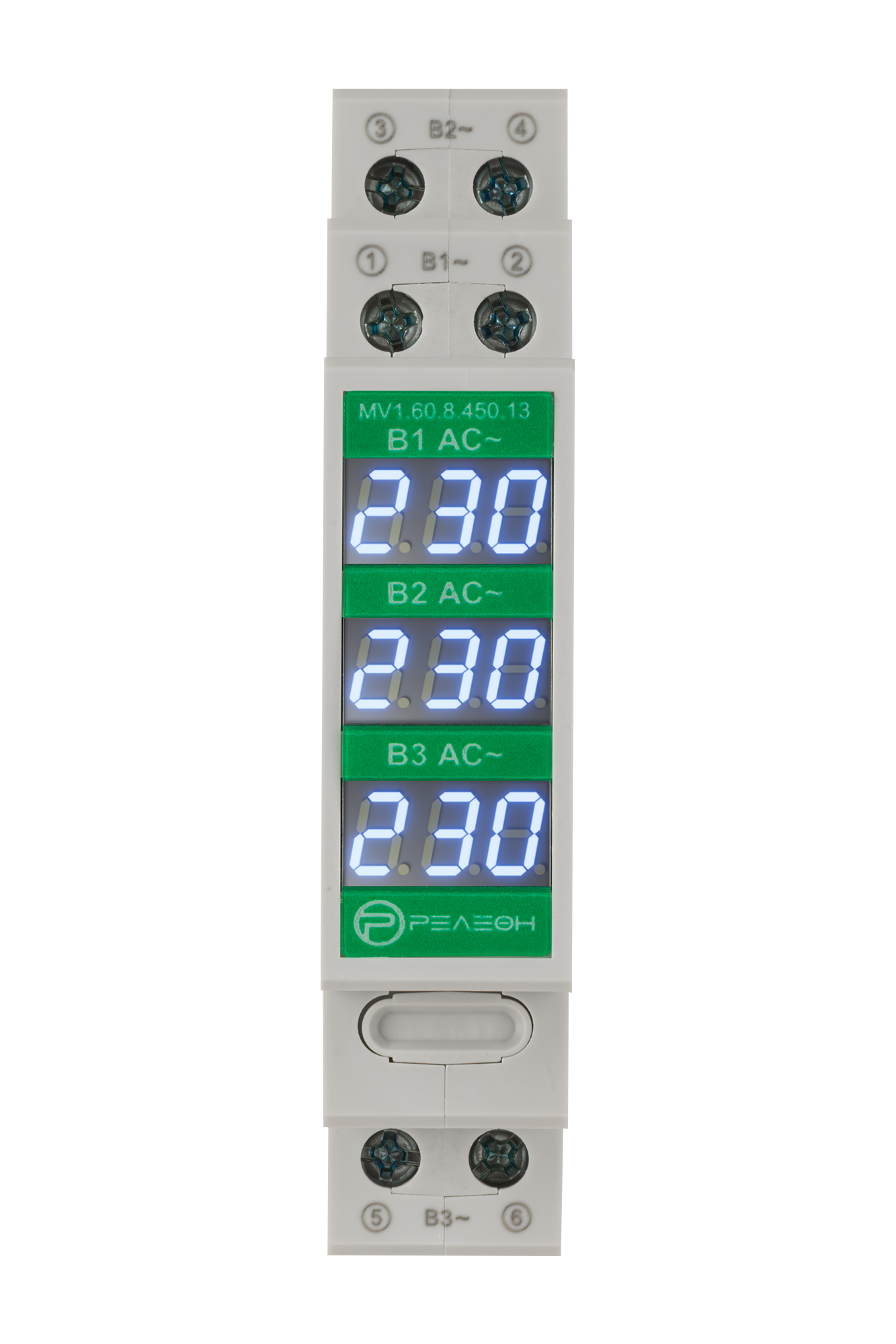 Модульный трехфазный цифровой вольтметр 60-450В AC, 3 полюса, релеон, MV1.60.8.450.13: сравнение цен, характеристики, фото, актуальное наличие и цены.